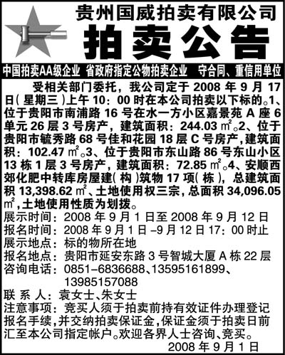 版權所有 ? 2020 貴州國威拍賣有限公司 保留所有權利 技術支持:興思匯科技 Powered by www_gzgwpm_com.51sunyou.com